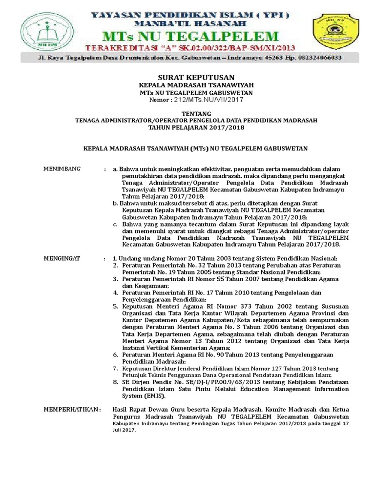 Contoh Sk Operator Data Madrasah Yayasan Pendidikan Islam Albarokah Kamaliyah Madrasah Ibtidaiyah Karamat Jaya Status Terakreditasi Course Hero from www.coursehero.com Check spelling or type a new query. Maybe you would like to learn more about one of these? We did not find results for: